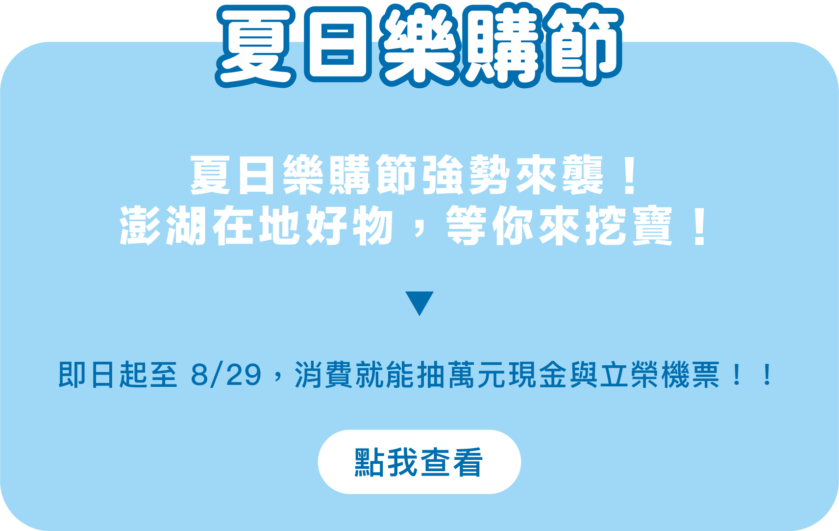 加入澎湖國家風景區管理處 LINE@ 點選「特約商家限定優惠」出示電子優惠圖卡於店家享有限定好康