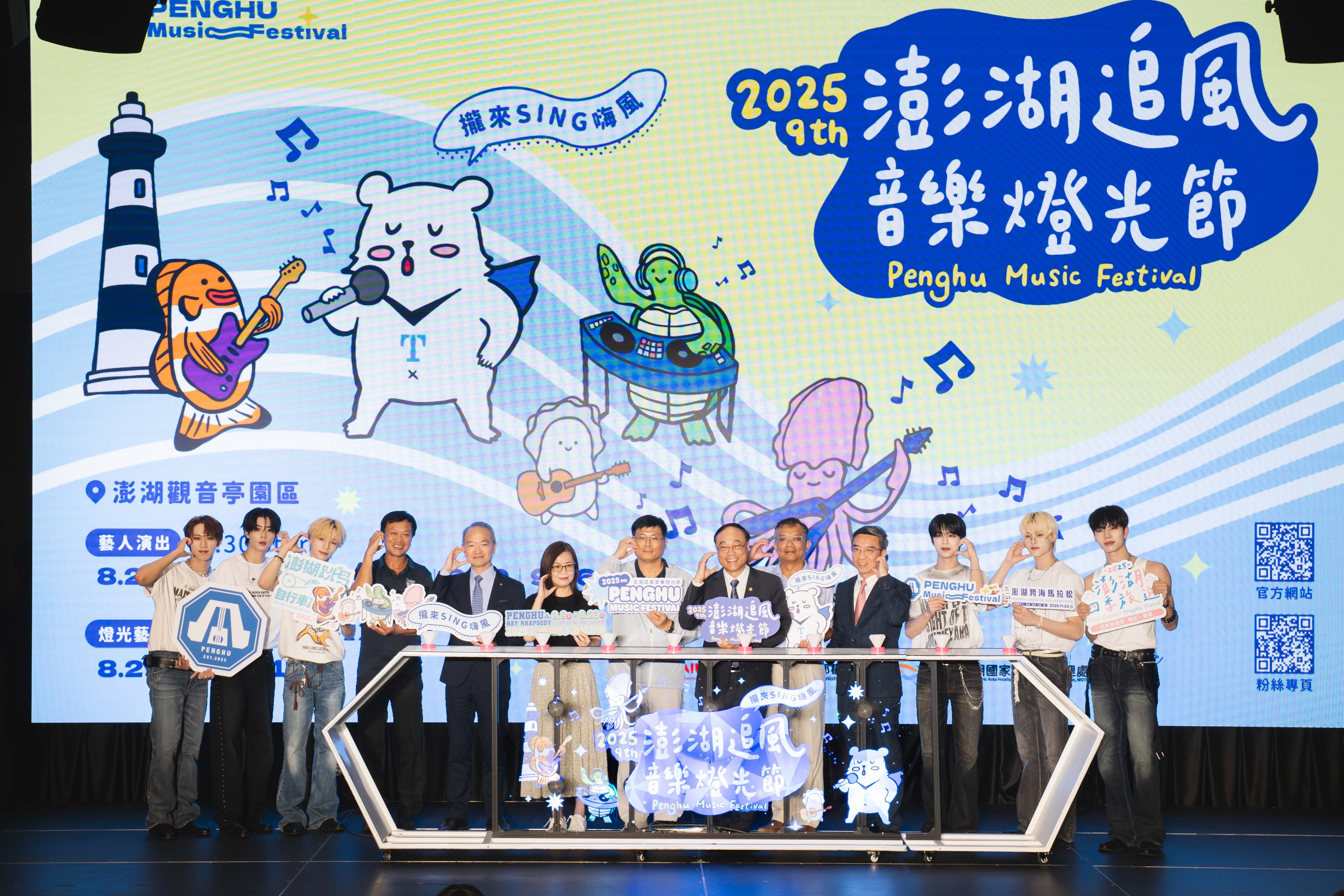 2025澎湖追風音樂燈光節記者會今(25)日下午於台北流行音樂中心隆重登場,活動由交通部觀光署周永暉署長主持,現場媒體記者及嘉賓雲集,包含澎湖縣政府林皆興副縣長、澎湖縣政府旅遊處劉美凡副處長、澎湖縣旅遊服務業職業工會林財傳理事長、華信航空股份有限公司張程皓總經理、立榮航空股份有限公司陳永裕副總經理等貴賓。今年活動以「海島樂園」為主題,串聯音樂、燈光藝術、旅遊與優惠四大主軸,打造秋季最強觀光品牌。且適逢「澎湖秋瘋季十週年」,主辦單位特別規劃更豐富的內容、更深度旅遊體驗,除演唱會活動從8月29日起至9月26日連續五週的每週五於澎湖觀音亭盛大舉辦之外,今年更加碼多一場晚會,6場演唱會卡司陣容超強:包括韓國性感天后孝琳、玖壹壹、ENERGY、溫嵐、TRASH、麋先生、滅火器、許富凱、OZONE等實力與人氣兼具的藝人接力開唱,週週都有驚喜!
