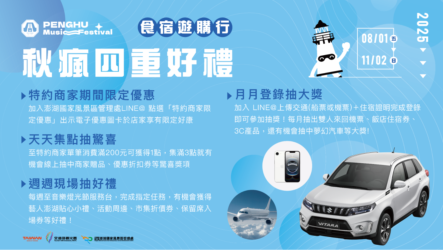 「2025澎湖追風音樂燈光節」8/29盛大開幕!搭配秋瘋季加碼送汽車、百萬好禮等你拿
