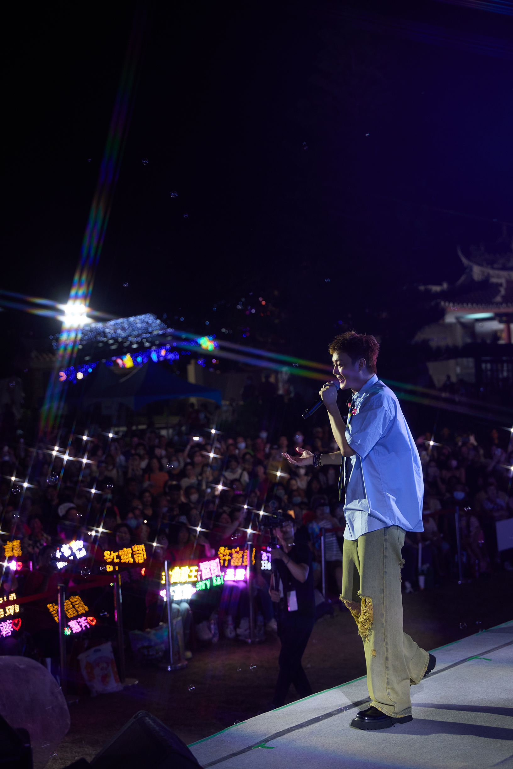 粉色OZONE宛若七夕白馬王子下凡 粉絲跨海追星到澎湖追風音樂燈光節